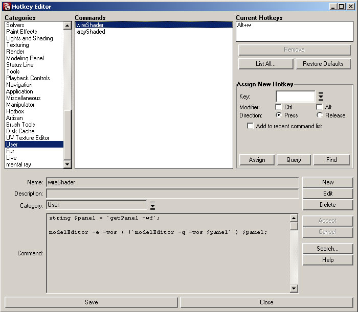 By default the "s" key is assigned to the SetKey function, so unless we intend to overwrite this hotkey, (which is up to you) we need to find another option. I like Alt + "w". You can add "Alt" or "Ctrl" by checking their respective boxes. You may even choose arrow or function keys from the drop down menu located next to the "Key:" field. Once you've decided on the key for this command, hit the "Assign" button to commit the changes to your preferences.